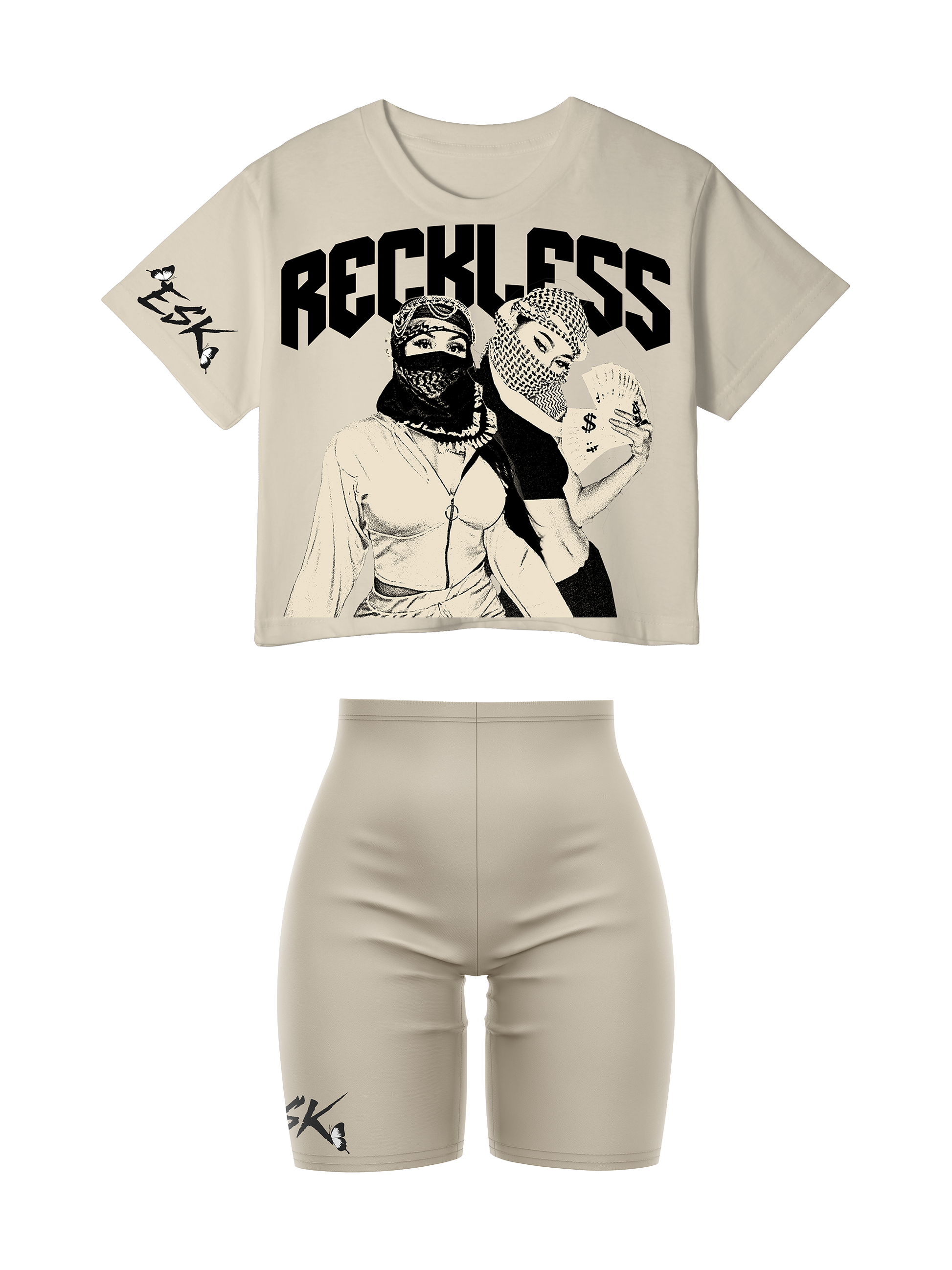Take risks and spread your wings with the Reckless Butterfly Crop Set. This comfortable top allows you to move freely and confidently, making it perfect for your daring adventures. Embrace the boldness and adventure within you, and feel empowered wearing this set. Go ahead, be a little reckless!